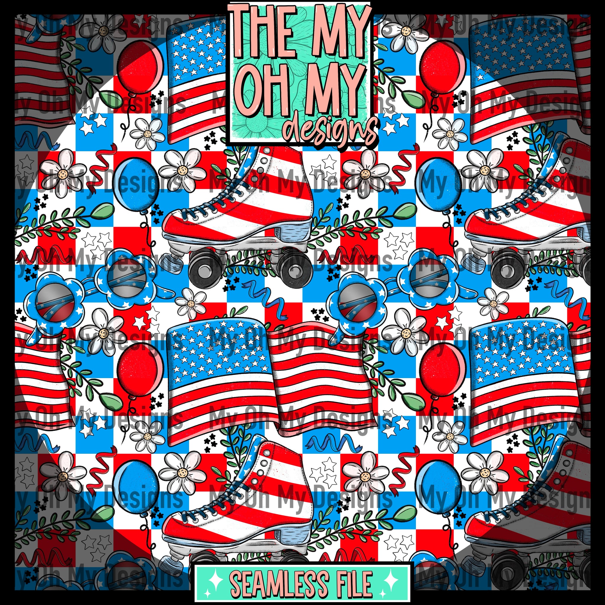 Roller Skates, Fourth of July, sunglasses, flowers, summer, red white blue, 4th - Seamless File